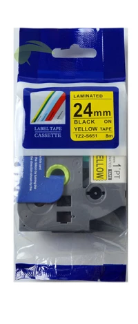Kompatibilní páska pro Brother TZe-S651 24mm x 8m silně lepící , černý tisk / žlutý podklad