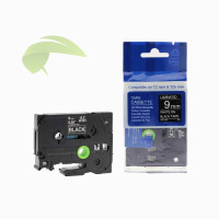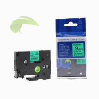 Kompatibilní páska pro Brother TZe-S721, 9mm × 8m, silně lepící, černý tisk / zelený podklad