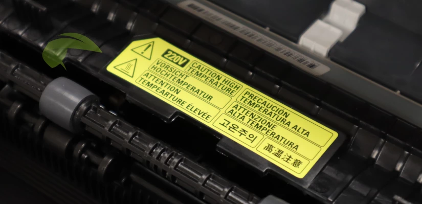 Zapékací jednotka se nachází v zadní části tiskárny blízko místa, kde vyjíždí z tiskárny potištěný papír.