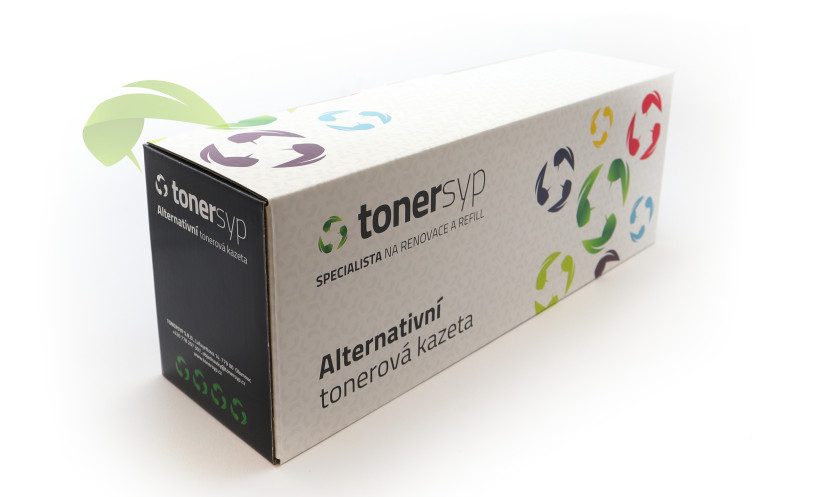 Zde je příklad balení alternativního toneru TONERSYP. Informace o tom, že se jedná o alternativní toner najdete na krabici v několika místech.