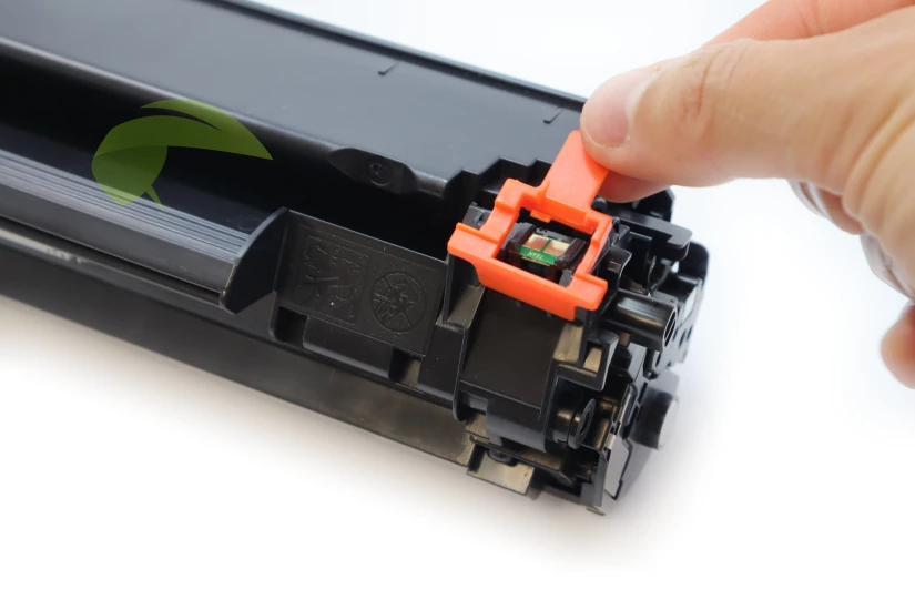 U tonerů do černobílých tiskáren HP a tonerů Canon se můžete setkat s oranžovou krytkou čipu, kterou je třeba před výměnou toneru odstranit. Pokud ji na toneru ponecháte, může tiskárna zobrazit chybu „10.000 Chyba paměti spotřebního materiálu“ (anglicky „10.0000 Supply memory error)“.