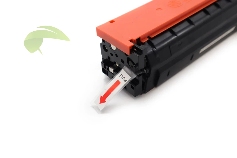 Na některých tonerech najdete další ochranné prvky oranžové barvy. Například u některých kompatibilních tonerů do tiskáren HP jsou umístěné na boční straně kazety. I tyto prvky je nutné z toneru odstranit.